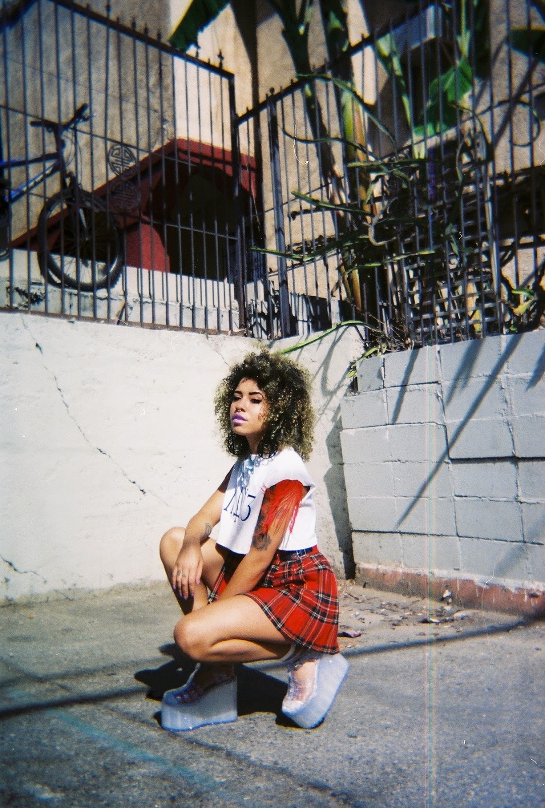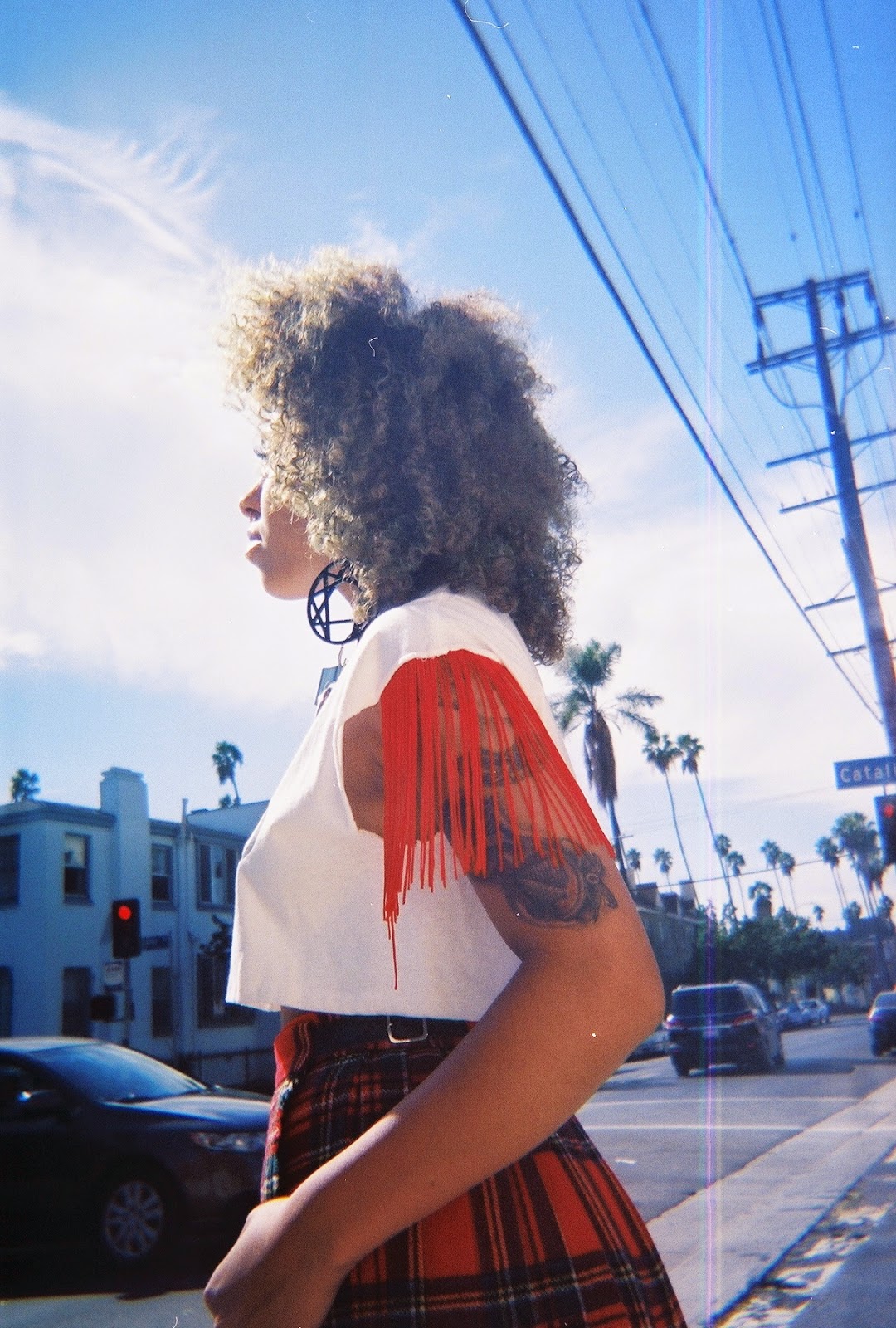 Lee is wearing the NIN3 Shoulder Shake Crop T, Divisible By None choker, & Venus earrings ⚛www.shopNIN3.com