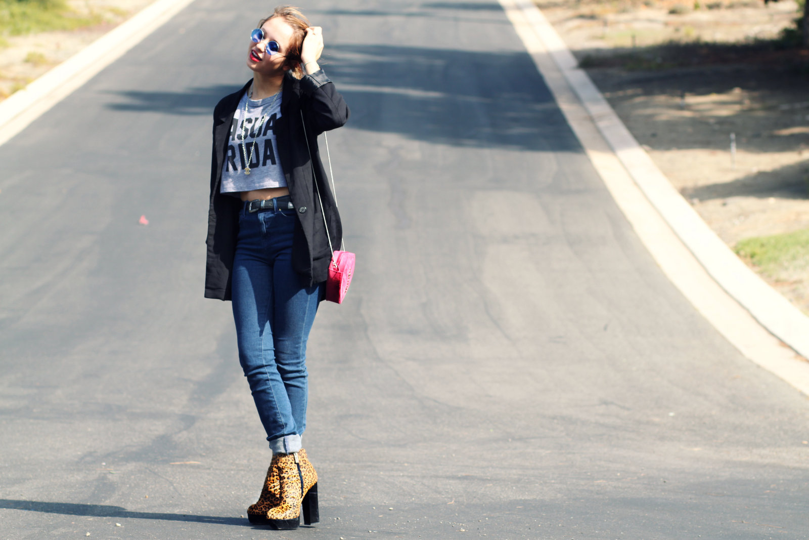 Devon- Dolce Vita, Jemma's in cheetah, DIY heart purse, BDG high rise jeans.